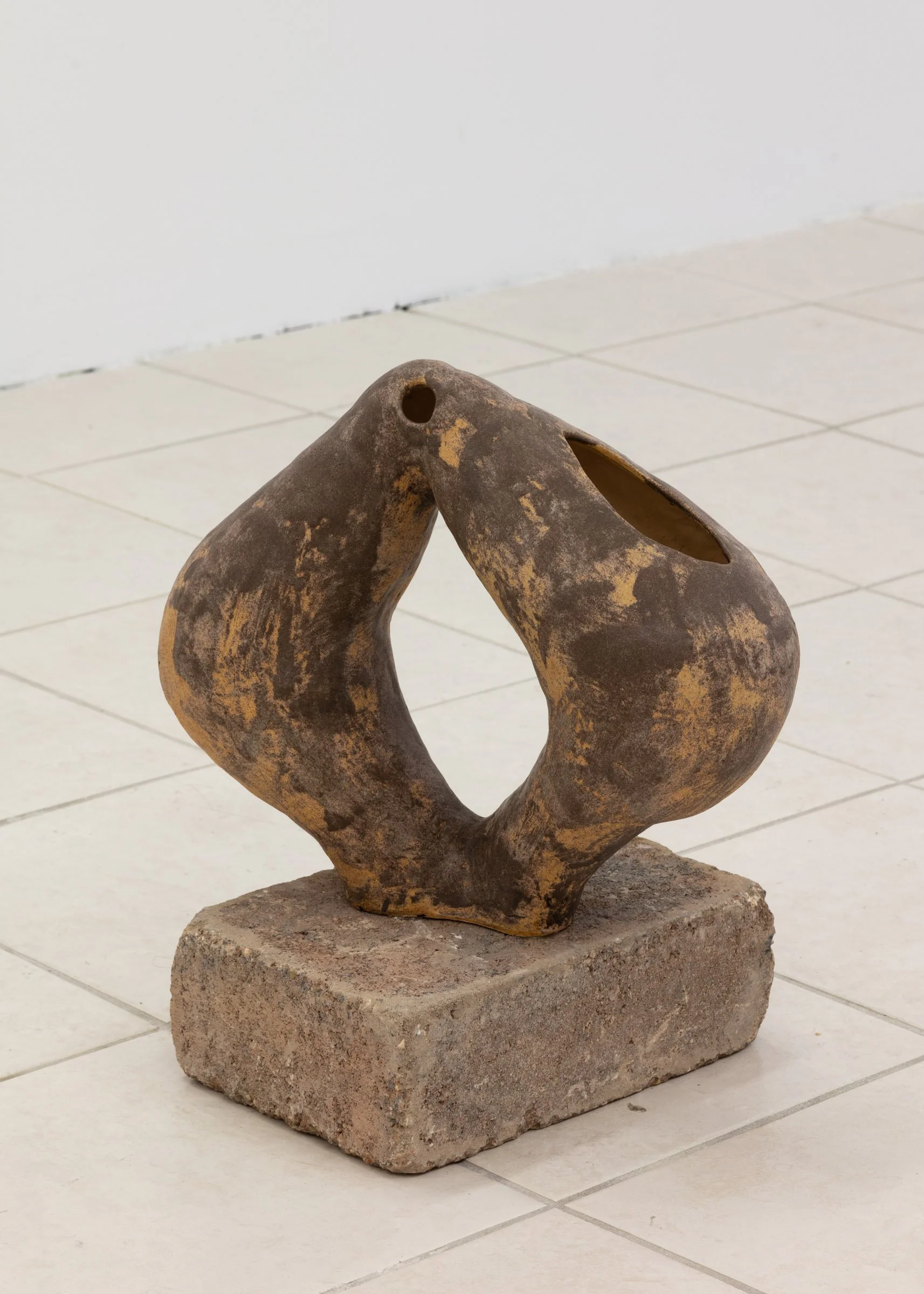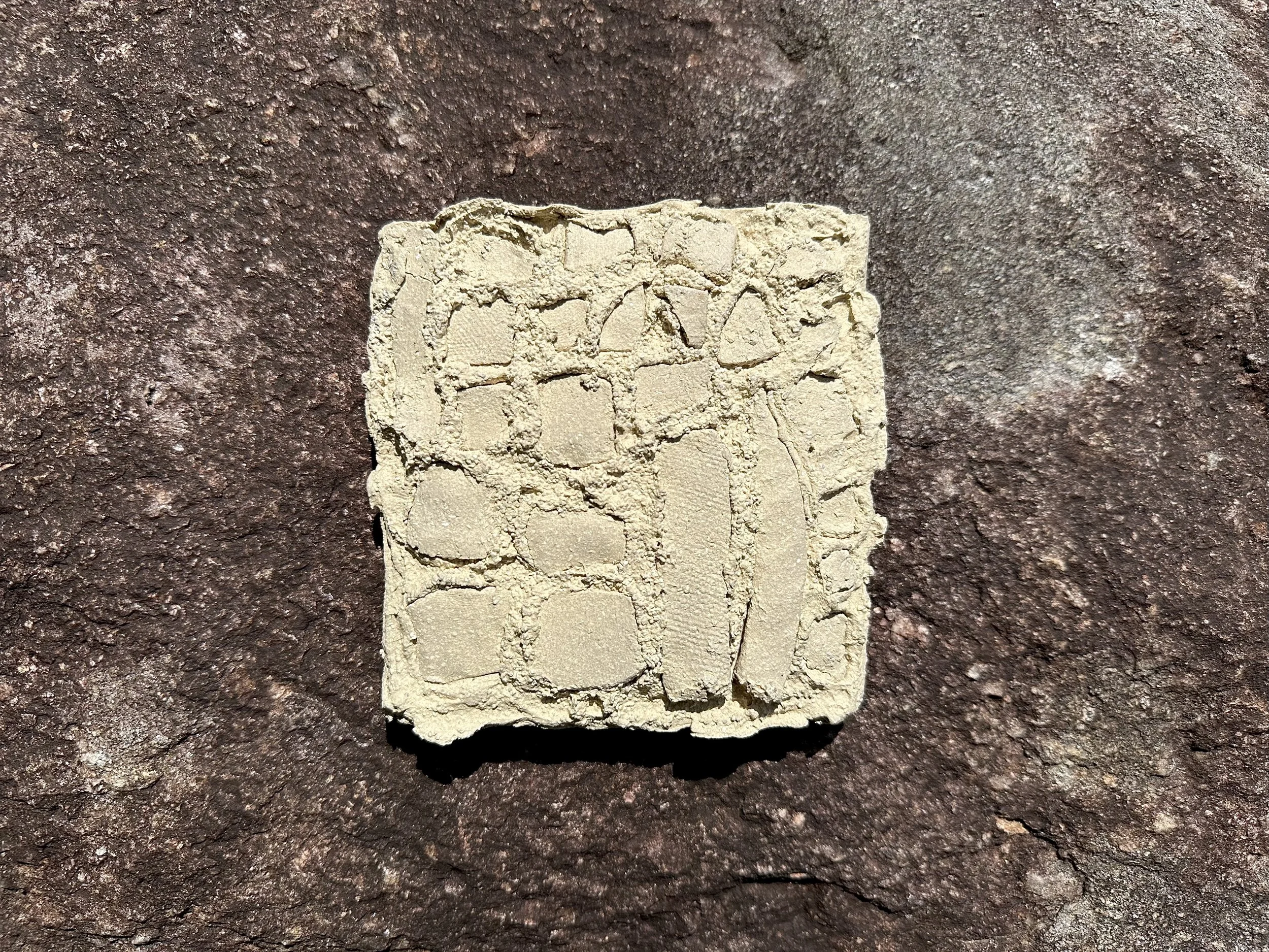 field, Tara Dougans, 2024 – glazed stoneware, raw clay, brick, 12 x 16 inches