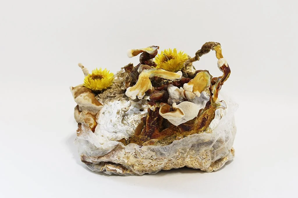 These fruiting bodies are the result of time listening, sensing, digging and digesting, composting, tending to, caring for, and percolating. Each exhibiting artist has crafted a unique process in which contemplation and emergence are key and yet, the urgency of “our times for learning again, or for the first time, how to become less deadly, more response-able, more attuned”2 is also present.