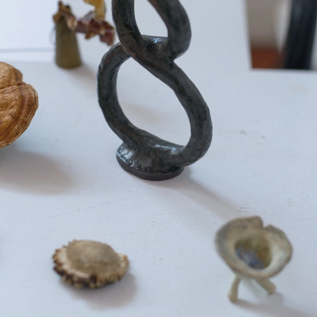 R – LP2 and LP3, Tara Dougans, 2023 ~ stoneware, glaze, hemp, reishi mycelium, 4” x 4” x 5”